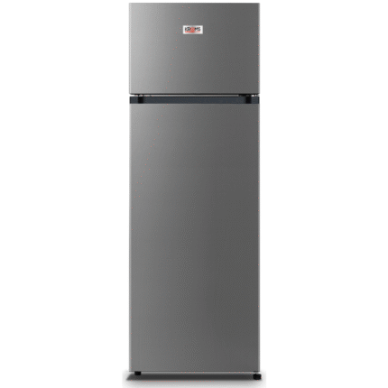 El Kromsline KF-1655-IX 202L 41L es un frigorífico de dos puertas con congelador superior, diseñado para hogares que buscan una