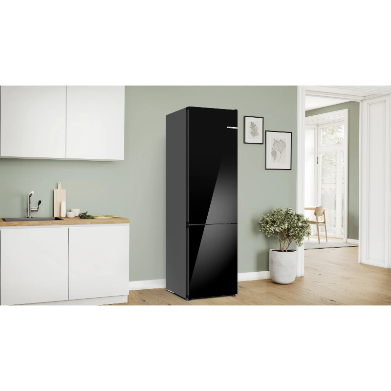 El Bosch KGN39LBCF es un frigorífico combi No Frost de libre instalación con una capacidad total de 363 litros, diseñado para hogares que buscan eficiencia energética, diseño moderno y conservación óptima de los alimentos. Su acabado en color negro le da un aspecto elegante y contemporáneo, ideal para cocinas actuales.