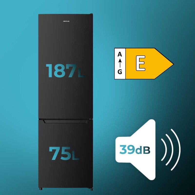 El Cecotec Bolero CoolMarket Combi 262 205 E es un frigorífico combi de libre instalación, diseñado para conservar alimentos de forma eficiente y organizada. Es adecuado para hogares de tamaño medio que buscan un electrodoméstico funcional, con buen rendimiento energético y espacio optimizado para el almacenamiento diario.