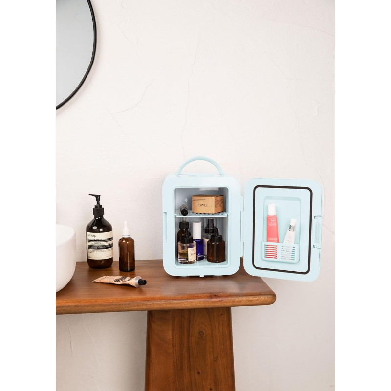El CREATE FRIDGE MINI BOX 4L es un mini frigorífico portátil de diseño retro, con una capacidad de 4 litros, diseñado para conservar productos cosméticos, medicamentos, bebidas o snacks a la temperatura adecuada. Es adecuado para personas que desean mantener sus productos de cuidado personal frescos, especialmente en climas cálidos, o para quienes buscan una solución compacta y estética para refrigeración en espacios reducidos como dormitorios, oficinas o baños.