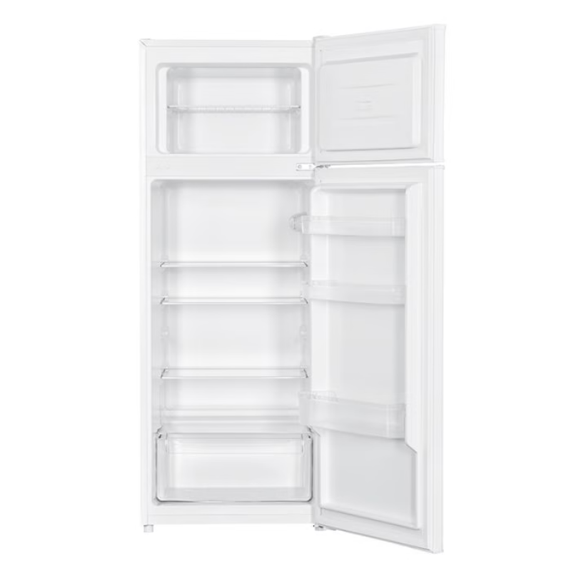 Este frigorífico de dos puertas es ideal para quienes necesitan guardar alimentos y congelar productos sin complicaciones. Tiene espacio suficiente para el uso diario, es fácil de manejar, consume poca energía y cabe bien en cocinas pequeñas. Es una opción práctica y económica para mantener tus alimentos frescos y organizados.