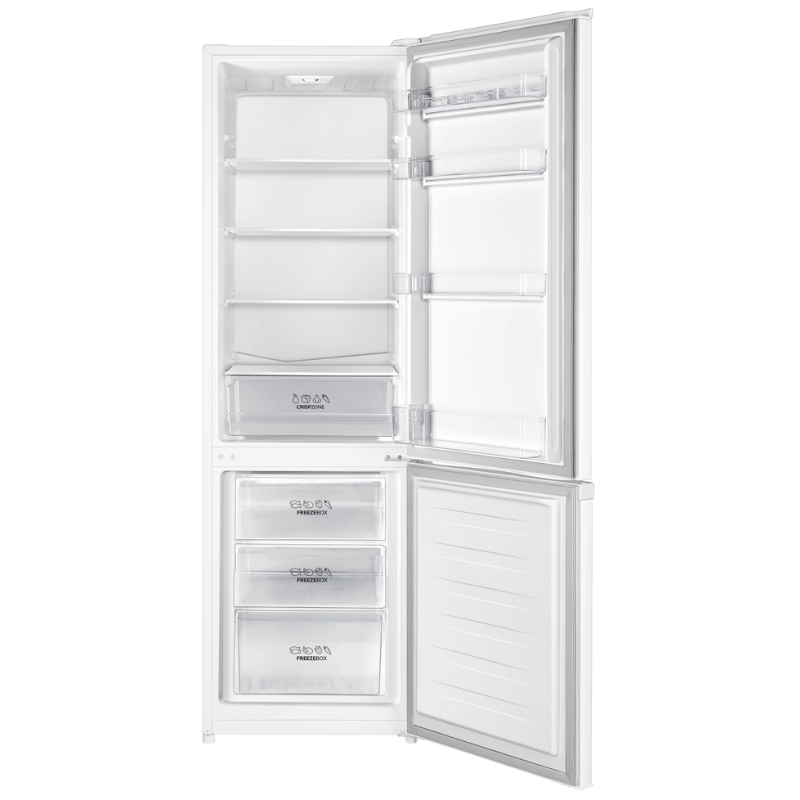 El Kromsline DF-KC-CI-1800-W es un frigorífico combi de libre instalación, diseñado para hogares que buscan una solución funcional y eficiente para la conservación de alimentos. Con una altura de 178 cm y una capacidad total de 269 litros, está pensado para familias medianas o personas que requieren un espacio de almacenamiento equilibrado entre refrigerador y congelador. Su diseño en color blanco se adapta fácilmente a cualquier estilo de cocina.