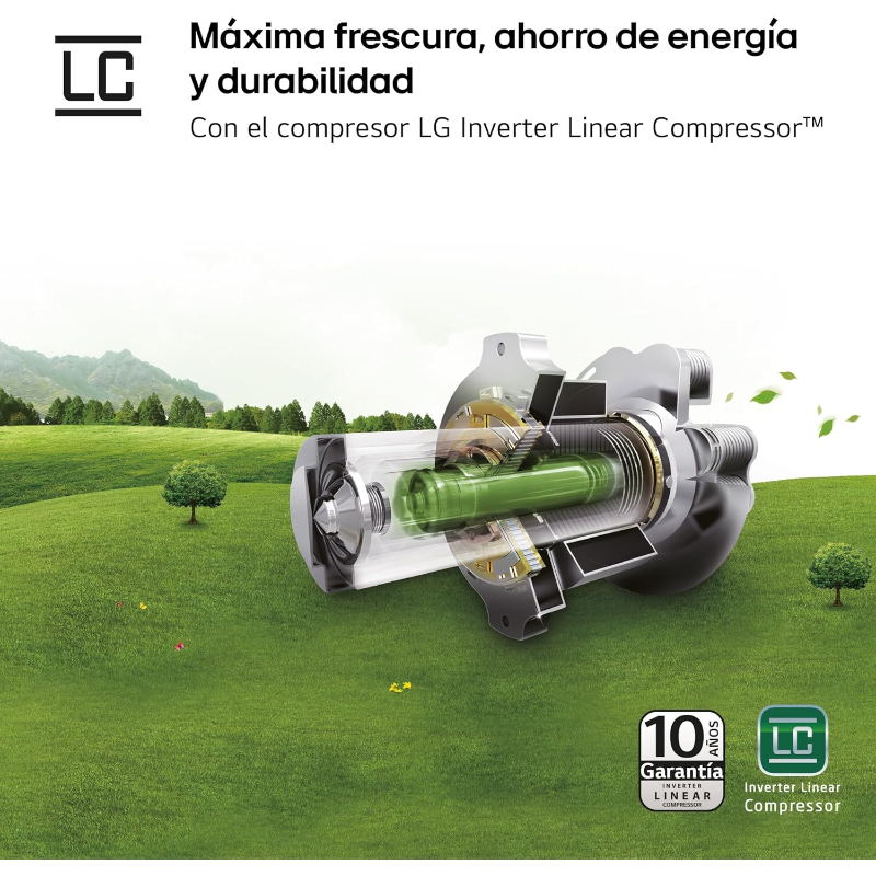 – Compresor Linear Inverter: reduce el consumo energético y el nivel de ruido, con mayor durabilidad.