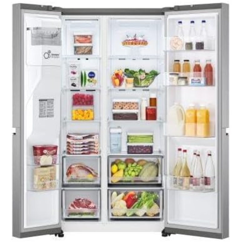 El LG GSLV71PZTD es un frigorífico side-by-side de 635 litros de capacidad total, diseñado para hogares que requieren un amplio espacio de almacenamiento y una conservación eficiente de los alimentos. Con una altura de 179 cm y tecnología No Frost, este electrodoméstico está pensado para familias grandes o personas que desean organizar sus alimentos de forma práctica y mantenerlos frescos por más tiempo sin necesidad de descongelación manual.