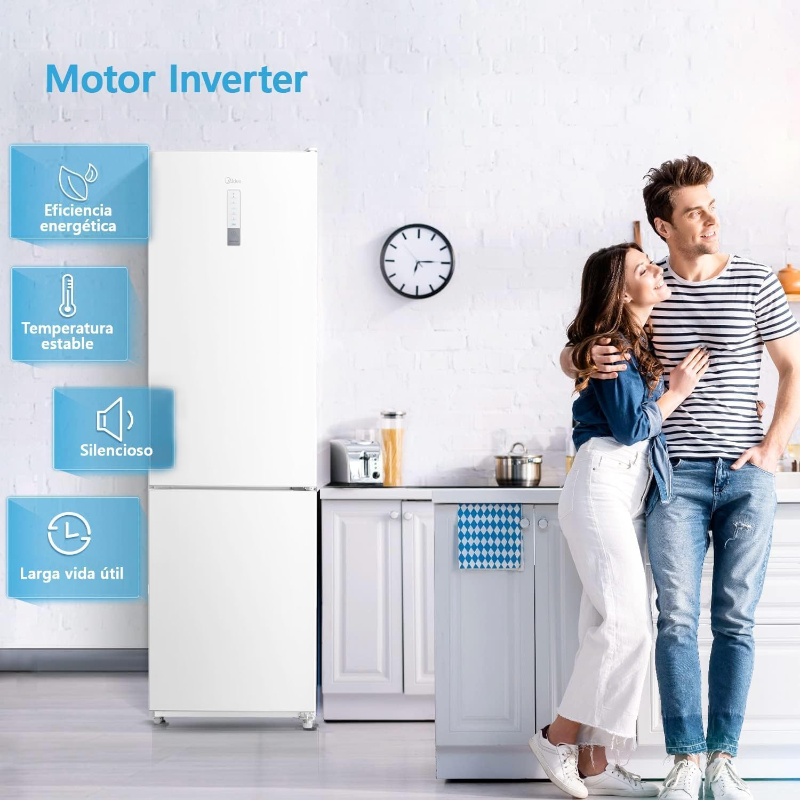 Resumen en lenguaje sencillo: este frigorífico combi de Midea es una nevera con congelador en la parte de abajo, que no hace escarcha, tiene espacio suficiente para una familia, cabe en la mayoría de cocinas y está disponible en dos colores. Es fácil de usar, no necesita mantenimiento constante y ayuda a ahorrar energía.