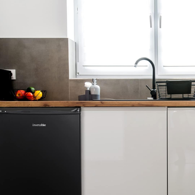 El UNIVERSALBLUE Frigorífico Bajo Encimera Mini es un electrodoméstico compacto diseñado para conservar alimentos y bebidas en espacios reducidos. Es ideal para personas que viven solas, estudiantes, oficinas, segundas residencias o como frigorífico auxiliar en el hogar. Su tamaño permite colocarlo fácilmente bajo encimeras o en lugares con espacio limitado, sin renunciar a la funcionalidad básica de refrigeración.